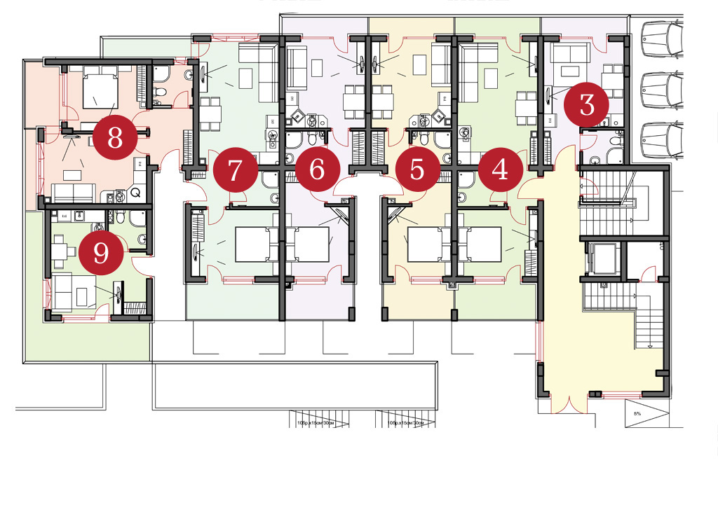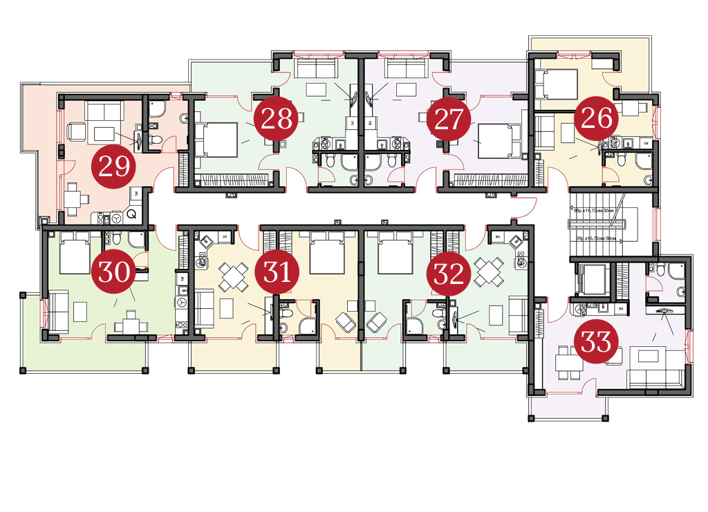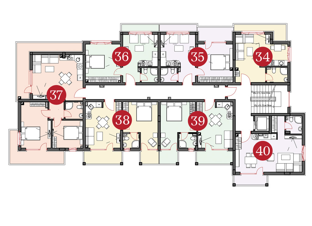Finishing works: The buildings are built with high-quality materials, carefully selected in combination with architectural details. The construction is reinforced concrete, all external and internal walls are built of Austrian Winerberger bricks, Porotherm light technology, which makes the building breathable. In the construction we have used materials like "Rofix" plaster ground, external and internal insulation too "Rofix", Rehau joinery, Czech insulation on the roof – Dehtochema, balconies lined with natural stone, iron wrought iron railing, and part of the facade of the building is lined with natural gneiss stone. The apartments are fully finished - terracotta tiled / laminated floors; latex painted walls and ceilings; placed PVC joinery; placed armored entrance and MDF interior doors; sanitary units - fully finished and equipped, terracotta tiled floor, faience on the walls, sanitary ware; installed Air conditioning; conclusions for the Internet and cable TV.