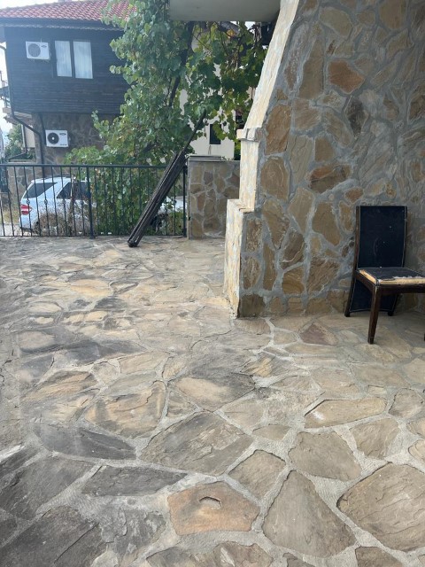 Finishing works: The house is built in the traditional Bulgarian Renaissance style, with reinforced concrete construction with brickwork; facade lined with stone and wood; terracotta tiled and laminated floors; latex painted walls and ceilings; placed four chamber PVC joinery with panoramic windows; placed solid entrance and MDF interior doors; placed wrought iron railing; sanitary units - fully finished and equipped, terracotta tiled floor, faience on the walls, sanitary ware, bathtubs, water heaters; electrical installation; plumbing and sewerage installations; heating is solved by means of a fireplace in the living room.