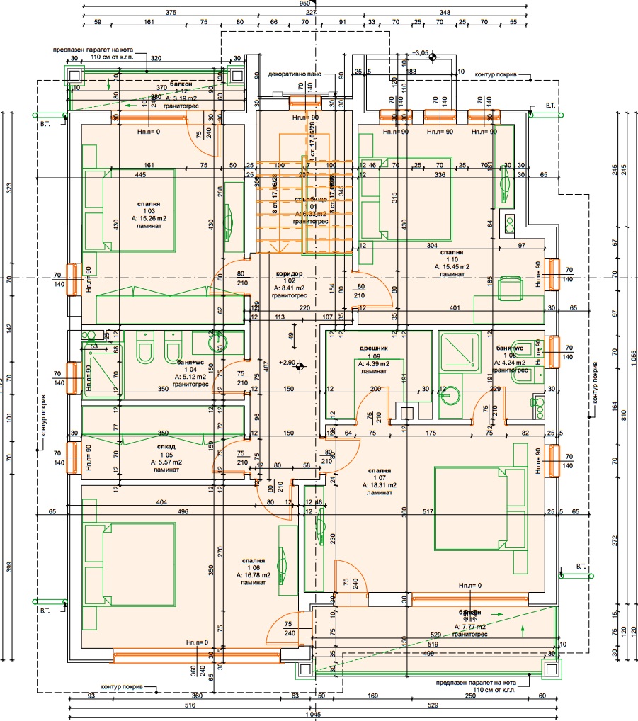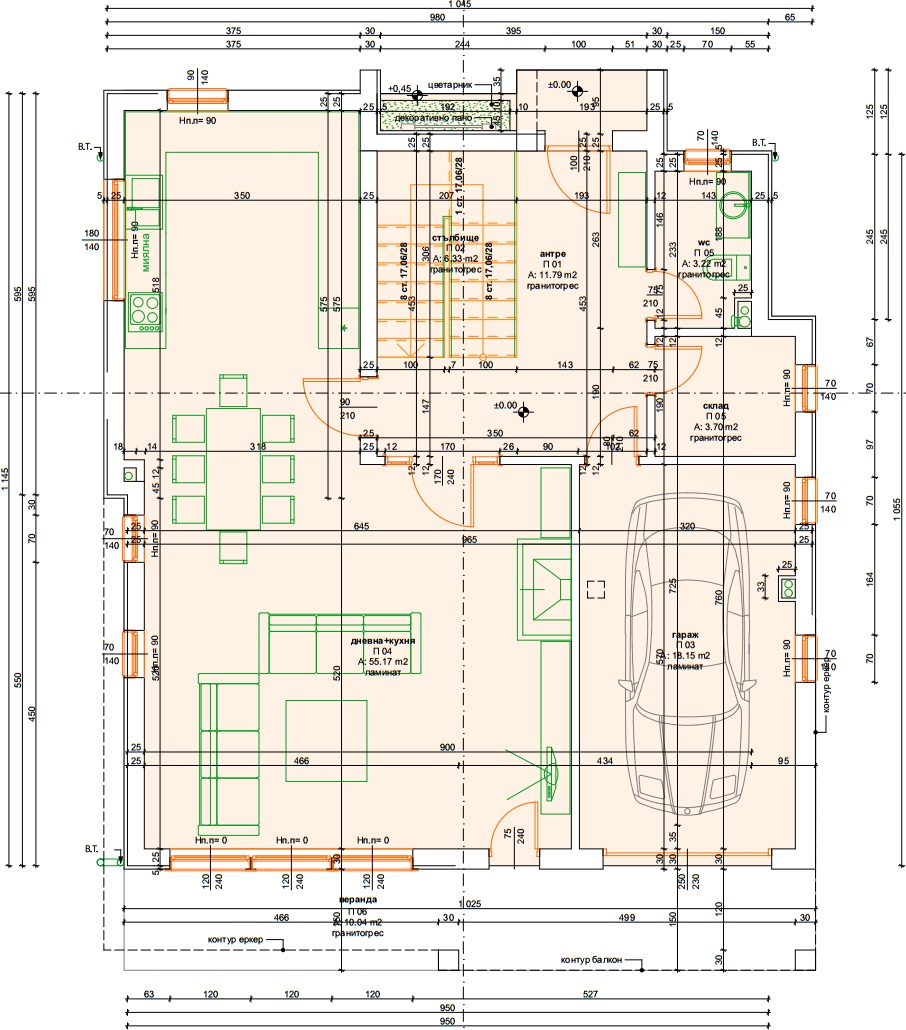 The plants in the green areas are combined to be beautiful and at the same time to provide natural freshness during the summer and wind protection during the winter. The exterior space is designed in a manner allowing this valuable characteristic of the plants to become more and more salient. There is well maintained and ennobled yards with planted lawn, fragrant roses, flowers and ornamental shrubs. Next to the houses there are parking lots for one or two cars. Behind the houses there is a verandas and place for a barbecue. An automatic irrigation system is installed. It is possible to make your own swimming pool in your yard. You can add barbecue and gazebo to your outdoor space.