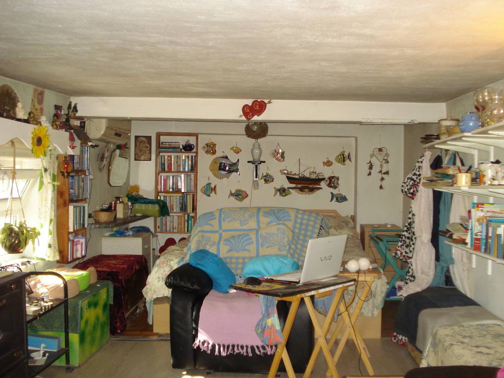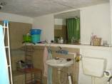 Ground floor: corridor, a bathroom with a toilet, and a living room with an open-plan kitchen. It has tiled flooring, equipped bathroom and fitted kitchen.