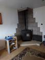 1st floor: living room with stove / fireplace; a bedroom with a bed and a wardrobe, a kitchen with a fridge, a cooker and cabinets, a washing machine, a bathroom with a toilet.