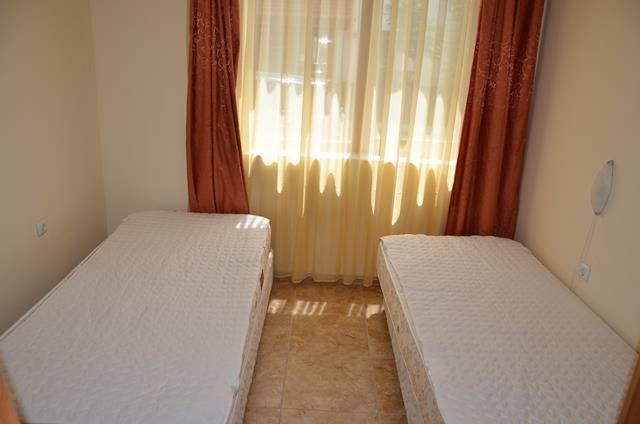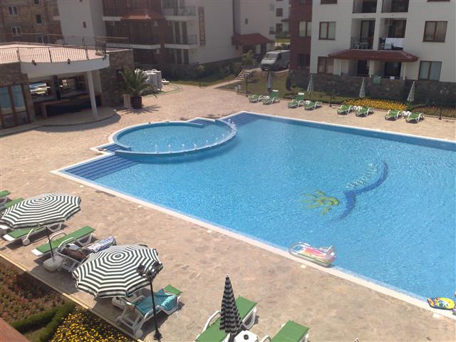 Description: The apartment is situated in Apolon III complex, between town of Nesebar and village of Ravda, 150 meters away from the sea and the beach, 300 meters away from the Aqua park and 2 km away from the town of Nesebar. The complex has two swimming pools - for adults and children, pool bar, restaurants, SPA center, childrens playground, tennis court, supermarket, parking area, year-round security, landscaped area, each section of the building has an elevator.