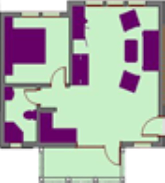 Distribution: living room with kitchen and dining area, bedroom, shower room with toilet and a veranda with an access from the living room.