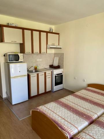 Finishing works: The apartment is fully finished - terracotta tiled and laminated floors; latex painted walls and ceilings; placed PVC joinery; placed armored entrance and MDF interior doors; sanitary unit - fully finished and equipped, terracotta tiled floor, faience on the walls, sanitary ware, shower cabin, washing machine, water heater.