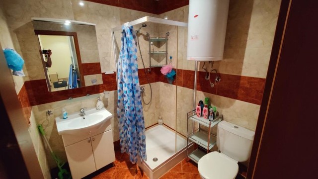 Finishing works: The apartment is fully finished - terracotta tiled and laminated floors; latex painted walls and ceilings; placed MDF doors; placed PVC joinery; shower room with toilet - fully finished and equipped, terracotta tiled floor, faience on the walls, sanitary ware, shower cabin, water heater; installed Air conditioning in both rooms.