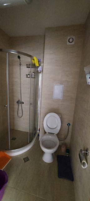 Finishing works: The apartment is fully finished - terracotta tiled floor; latex painted walls and ceilings; placed entrance and MDF interior doors; placed PVC joinery; shower room with toilet - fully finished and equipped, terracotta tiled floor, faience on the walls, sanitary ware, shower cabin, water heater; installed Air conditioning in the living room.