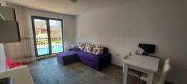 Distribution: entrance hall, living room with kitchen and dining area, bedroom, shower room with toilet and terrace with pool view and hills view.