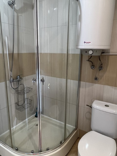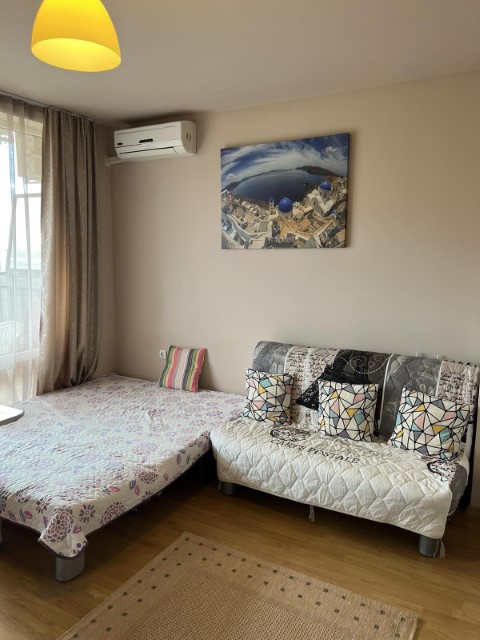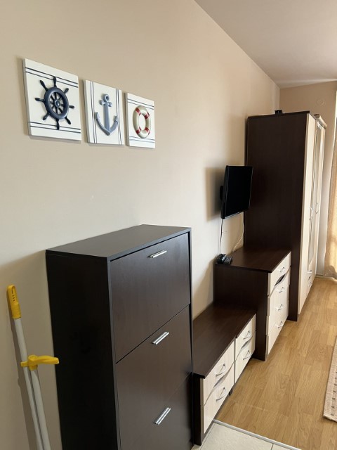 Finishing works: The studio is fully finished - terracotta tiled and laminated floor; latex painted walls and ceilings; placed armored entrance and MDF interior doors; placed PVC joinery; shower room with toilet - fully finished and equipped, terracotta tiled floor, faience on the walls, sanitary equipment, shower cabin, washing machine, water heater; installed Air conditioning.