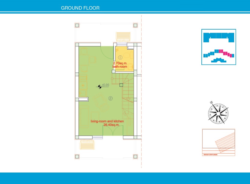First floor - living room with kitchen and dining area, shower room with toilet and two verandas (one with barbecue);