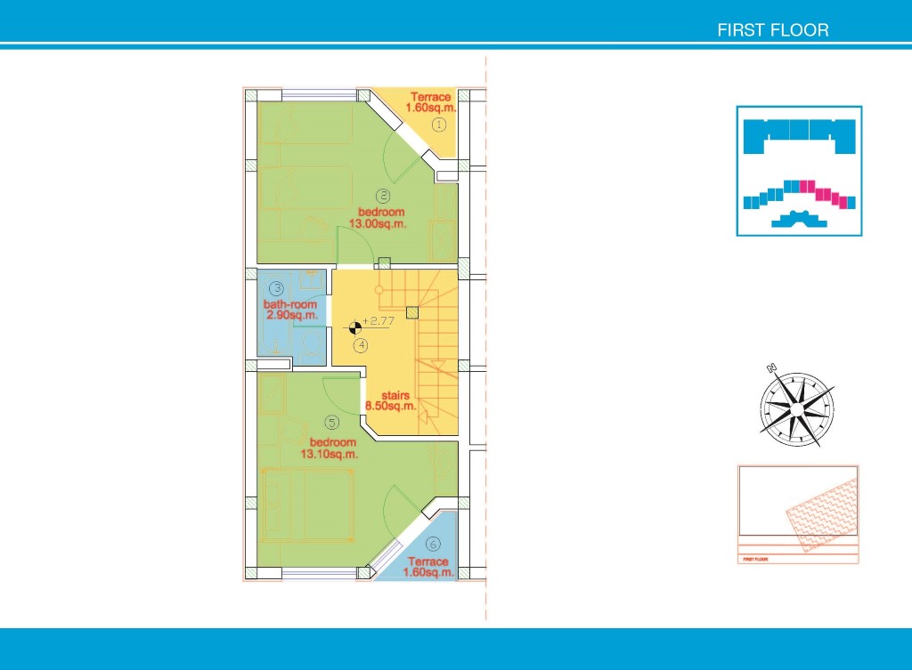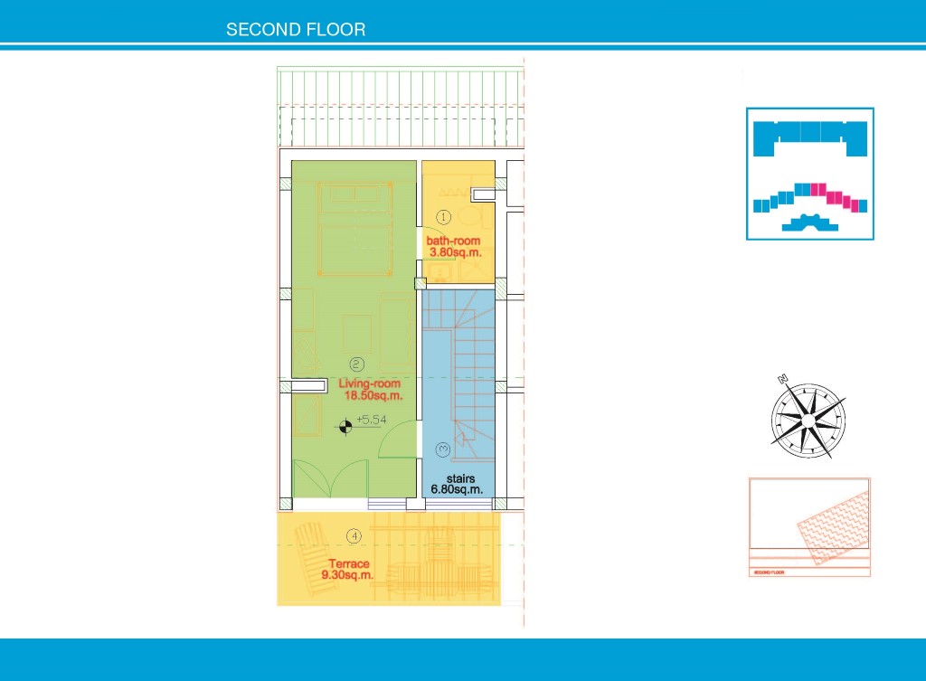 Second floor - corridor, two bedrooms with an own terraces, shower room with toilet;