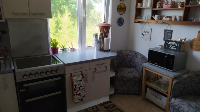 Finishing works: The house is after renovation, a good repair was made, a cozy atmosphere. The house has a new roof, thermal insulation, painted facade, new electrical installation, new plumbing and sewerage. The house is fully finished - terracotta tiled and laminated floors; latex painted walls and ceilings; placed PVC joinery; placed PVC entrances and PVC interior doors; sanitary units - terracotta tiled floor, faience on the walls, sanitary ware, shower cabins, water heaters; heating is done using central heating, air conditioning and electrical heaters.
