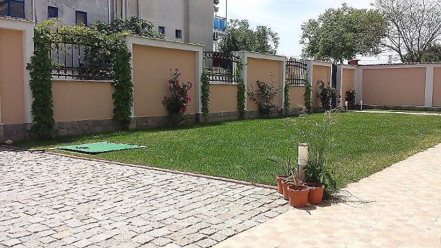 Yard: The plot of land has an area of 458 sq.m, flat, surrounded by a beautiful, solid fence, gates. The yard is beautifully landscaped with planted roses, ornamental trees and ryegrass, with a separate parking lots for two cars, alleys and lighting were made. There is a possibility to build a swimming pool.