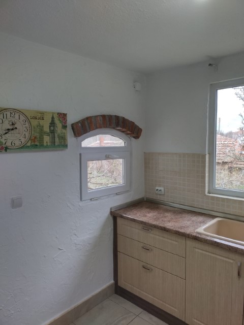 Finishing works: The house is fully finished - terracotta tiled and laminated floors; latex painted walls and ceilings; placed PVC joinery; placed PVC entrance and MDF interior doors; sanitary unit - terracotta tiled floor, faience on the walls, sanitary ware, water heater.