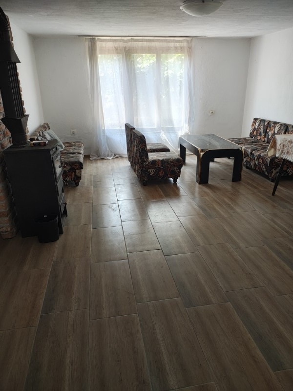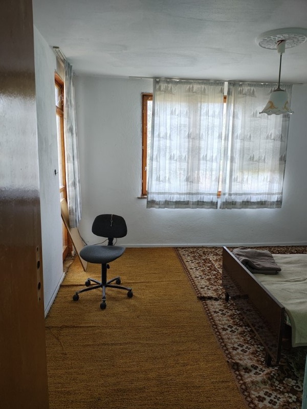 Finishing works: The house has concrete slabs between the floors and the roof. The house is partially finished - terracotta, carpet and linoleum on the floor; latex painted walls and ceilings; placed wooden joinery; placed entrance and wooden interior doors; sanitary units - one is fully finished and equipped, terracotta tiled floor, faience on the walls, sanitary ware, water heater; the heating is provided by log burning stoves.