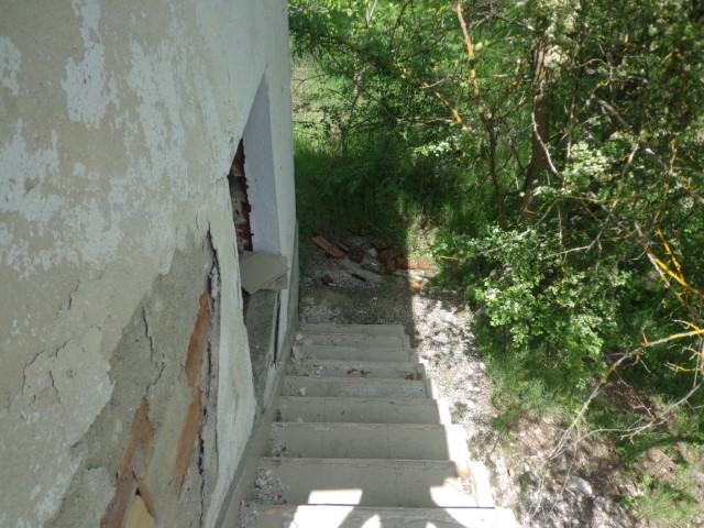 An external staircase connects both floors.