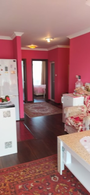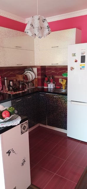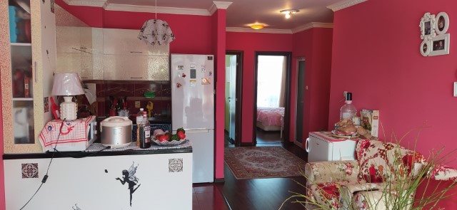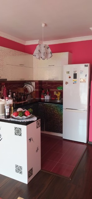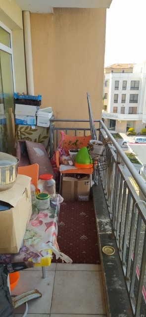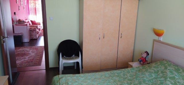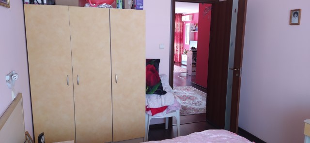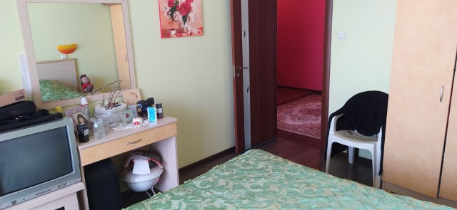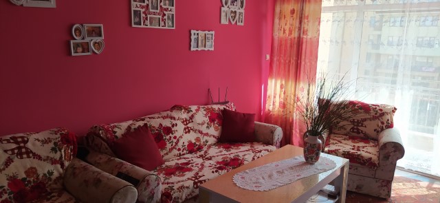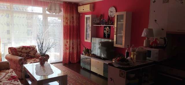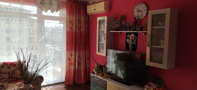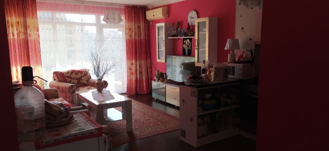 Finishing works: The apartment is fully finished - laminated and terracotta tiled floors; latex painted walls and ceilings; placed PVC joinery; placed armored entrance and MDF interior doors; sanitary units - fully finished and equipped, terracotta tiled floor, faience on the walls, sanitary ware, bathtub, water heater; under floor heating in all rooms; installed Air conditioning in the living room.