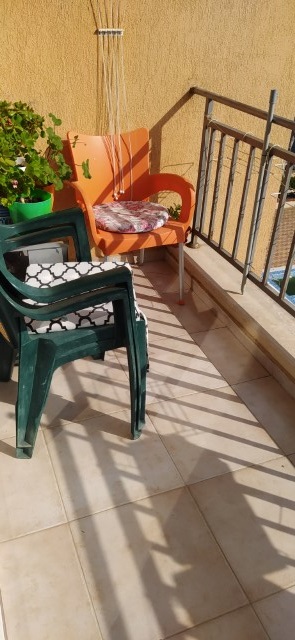 Distribution: entrance hall, spacious living room with kitchen and dining area, two bedrooms, bathroom with toilet, toilet and two terraces, one with access from the living room and pool view, and the second with access from both bedrooms and a view of the hills and neighboring buildings.