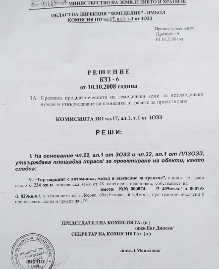 Wide range of documents: Excellent property documents; Detailed development plan - common and for each one separately from June 2007; Property Purpose "TIR car park with car wash, motel and restaurant"; Geodetic measurement; Engineering geological survey; Propery plan of underground cadastre; Permission and plan for placing a moveable object; Opinion from the electricity company to connect to the electricity network; Central water supply.