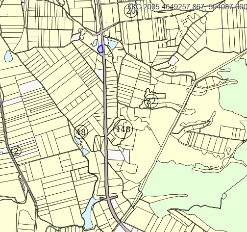 The plots of land have a total area of 6234 sq.m and are separated by the main road to the border. General facing the main road distance is 168,23 meters.