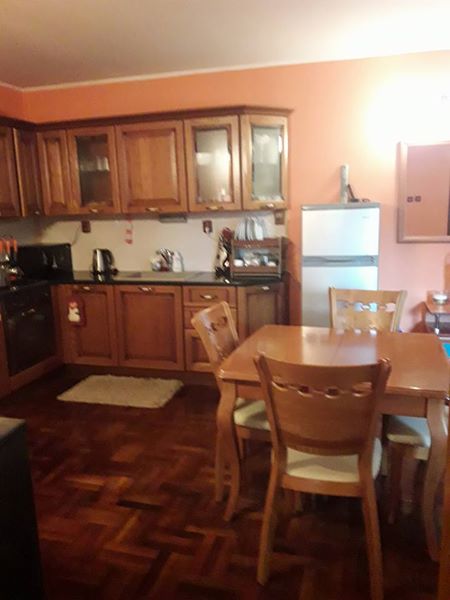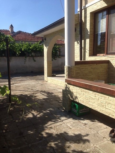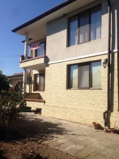 Description: We offer for sale a fully furnished two-storey house with a total area of 260 sq.m. The house is located in quite street, overlooking the surrounding countryside. The house was built and received Act of Permission to use granted in 2010. The foundations of the house are made of stone, the walls are brick built, the plates are concrete. The facade has an external thermal insulation and a stone cladding. The roof is made with new roof tiles. The house is fully finished: flooring - parquet, terracotta, laminate; walls - wooden paneling, latex painted; ceilings - latex painted; MDF doors; PVC joinery with double glazing; fully finished and equipped shower rooms with toilets - terracotta tiled floor, faience on the walls, sanitary ware. For heating in the house serves log burning stove in the living room with water lines and central heating with radiators. Solar panels for hot water are installed. The house is for sale fully furnished and equipped. The property is electricity and water supplied, connected to the central sewerage.