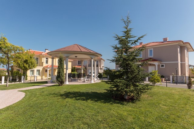 The houses are in a finished state. They are equipped with everything necessary for your luxurious accommodation. The infrastructure includes already constructed street network, sidewalks, grounds, street and park lightning, power substation, water-conduit and effluent treatment plant. The electrical wiring and plumbing are done according to European quality standards. The buildings are with monolithic construction, WIENERBERGER bricks, with perfect hydro, thermal and sound insulation, armoured doors and laminated HDF interior doors, six-chamber PVC system with window glazing. The roof system is BRAMAC. The access to the complex is under control which provides peace and security.