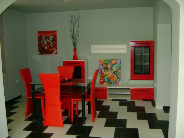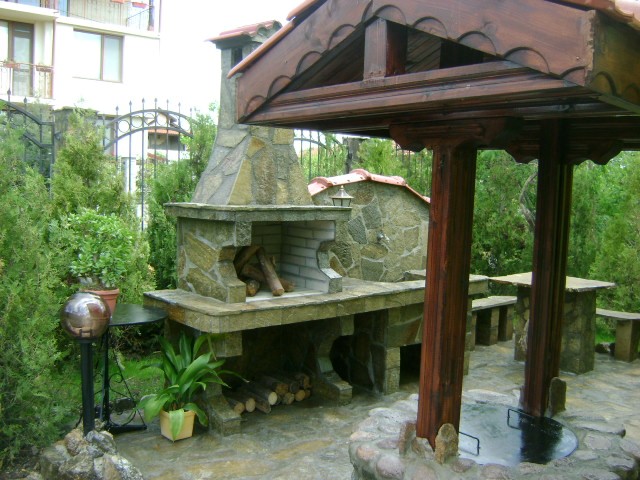 Description: We offer for sale a new fully finished three-storey house in a villa area of Burgas Mineral Springs, just 12 km from the centre of the city of Burgas. The house is located in a quiet location, on the asphalted street, with sewerage. The total area of the house is 210 sq.m. The first floor consists of a living room with kitchen and dining area, veranda, bathroom with toilet. The second floor consists of three bedrooms with terraces, two bathrooms with toilets. The third floor consists of two bedrooms with terraces, bathroom with toilet and a big terrace with wonderful views. The house is fully finished: floorings - terracotta tiled and laminated; latex painted walls and ceilings; PVC joinery; MDF and PVC doors; external heat insulation; fully equipped bathrooms with toilets; fireplace in the living room; air conditioning in all rooms. It's for sale partially furnished, the first floor is furnished, without appliances. The yard has an area of 300 sq.m, well maintained, landscaped. It's built barbecue, outdoor sink, a well and a parking lot. The fence is solid.