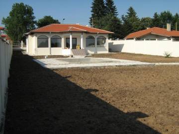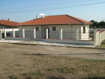 The house is with a spacious garden of 1000 sq.m, with a brick wall and gate of wrought iron. The built-up area is 146 square meters The distribution is modern and functional. It consists of one floor: three bedrooms, spacious living room with kitchen, two bathrooms, laundry room, two entrances. In the courtyard of each house has 18 sq.m of parking. The house is built with quality materials. The house is completely finished outside, insulation, plaster, tiles on the terrace. Inside the house is finished with terracotta and laminate flooring, wall color latex, interior doors, bathroom and toilet with faience and terracotta, fully equipped.