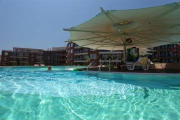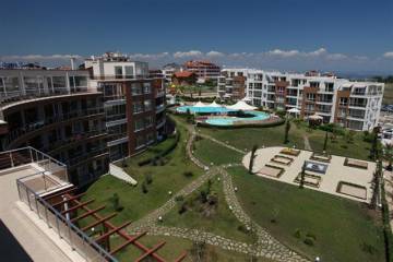 The holiday complex is situated 200 meters from the sea and 5 minutes walk from the beach. The complex consists of 2 main buildings - A and B, 149 apartments in total and all of them have marvelous sea view. Building A consists of 28 apartments. Building B - 121 apartments. All 149 - mixture of studio, 1 - and 2 bed apartments.
