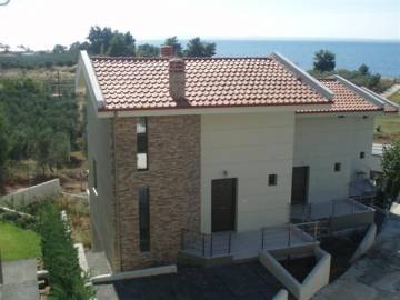 Holiday house with an area of 90 sq.m. in a complex of 5 semi detached houses in GERAΚIΝI of Chalkidiki, is offered for sale.