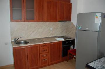 Description: The apartment consists of lounge with dining area and kitchenette, bedroom, spacious entrance hall, bathroom with toilet and a balcony. Flooring in the living room is a granite-gresse, in the bedroom - laminated parquet, in the entrance hall - granite-gresse. Bathroom with terracotta on the floor and tiled walls, has a bath tub, suspended ceiling, water-heater, accessories.