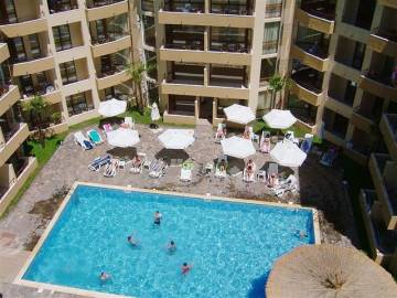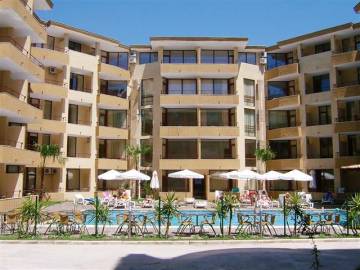 Location: Sunny Beach Resort makes is located 30 km away from the International Airport Burgas and 40 km away from the regional centre - Burgas. The town of Nesebar is just 3 km away from the complex. The resort has a beach with a length of 10 km and a width of 30-60 meters with fine golden sand and natural dunes.