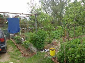 Yard: The plot of land has an area of 700 sq.m, flat, surrounded, with built a shed with barbecue in front of the house. Several outbuildings are built in the yard behind the house. Many fruit trees (apple, plum, cherry, hazelnut, black currant, blueberry, pear and mulberry) are planted in the yard. It has created a pipeline with pump from the nearby river for watering the yard.