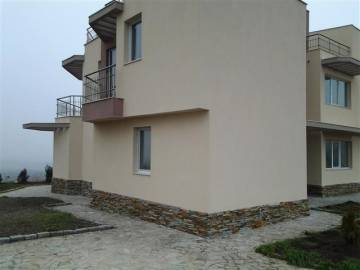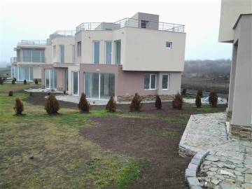 Description: We offer for sale five three-storey semi-detached houses on two-families with adjoining yard and own parking space in a gated complex with a common fence and gate in Banevo area, Burgas. Each house has a separate entrance. The complex offers a magnificent sea view. The yard of the complex is landscaped, planted with flowers and shrubs. The houses are designed and built by any standards and materials of the highest quality. The complex has its own power substation and sewerage to the property.