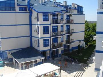 Location: Residential complex Blue Bay Palace is built in a residential area of the town of Pomorie, near the hotel "Sunset Resort", "Via Pontica" and others. The complex is located on the waterfront of the sea, just 20 meters from the seafront in the new part of the town of Pomorie. Within walking distance is the new part of town, with lots of restaurants, cafes and other entertainment. The resorts and Burgas can be reached by bus or individual taxi. The distances to the centre of the town of Pomorie - 2 km, to the town of Nesebar - 15 km, to Sunny Beach Resort - 18 km.