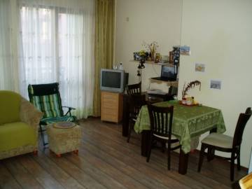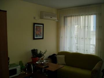 Description: We offer for sale a fully furnished and equipped two-bedroom apartment in Araliya complex. The apartment is with a total area of 71,70 sq.m, situated on the first residential floor of a three-storey brick building. The apartment consists of: entrance hall, living room with kitchenette and dining area, two bedrooms, shower room with toilet, toilet and two terraces, one of them with access from living room, and the other with access from both bedrooms. The building is only 100 meters from the best beach between Ravda village and town of Nesebar, very quiet place. The building has Act of Permission to use granted. It's suitable for year-round use, because its proximity to the town of Nesebar and village of Ravda. The complex has a pool, landscaped areas and free parking. Nearby is located a large Aqua park, bus stop (year-round bus service) and hotel Sol Marina, which features a large SPA center, tennis courts and children playgrounds.