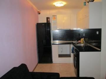 Description: For sale a studio in the village of Ravda, on the ground floor of the 5-storey building Villa Kastoria, in which there are 16 apartments. The residential building has an Act of Permission to use granted from 26.07.2012. The total area of the studio is 42,23 sq.m. It consists of living room with kitchenette and sleeping area with an access to large terrace, with northwest exposure and bathroom with toilet. The apartment is in excellent condition. It's is for sale with full furnishing. Laminated and terracotta tiled floor. Latex painted walls. The bathroom with toilet is fully equipped. The air conditioner works both for heating in winter and cooling in summer. There is also Internet and cable TV.
