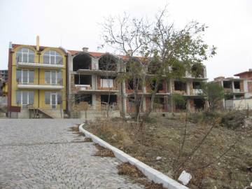 Location: We offer for sale four single-family semi-detached houses - townhouses located 4 km from the beach in Sunny Beach Resort, Municipality of Nesebar, Burgas Region. The houses are located near the bus stop and shop. Each house has a total area of 246 sq.m and are situated on a common plot of land with a size of 400 sq.m. One of the houses is ready, and others are in rough construction.