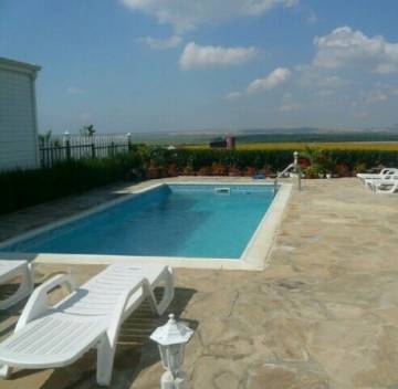 Description: We offer for sale new luxury four-storey house located in a quiet location, 3 km from the beach of Sunny Beach Resort. The house has a total area of 400 sq.m. The house has 4 bedrooms, 5 sanitary units, 2 fireplaces, central heating of pellets, solar panels for heating of hot water, sauna, jacuzzi. The yard with a size of 500 sq.m is arranged like a garden with pool and barbecue. The house is for rent for 1000 EUR per a month. The house is for sale a fully finished, furnished and equipped with everything you need.