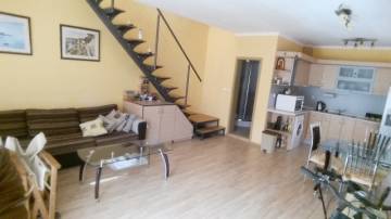 For sale a fully furnished two-storey townhouse with sea view in a complex, 50 meters from the beach of the town of Sveti Vlas, Nesebar municipality