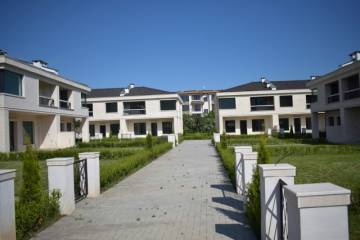 Description: We offer for sale a detached, two-storey townhouses in the wonderful Park complex, which is located in the beautiful coastal area of Burgas city - Sarafovo. The complex is located just 200 meters from the beach, minutes from Burgas Airport and from the city center. The gated complex is located on the territory with an area of 6177 sq.m and consists of six double and two triple townhouses, each with a separate courtyard, surrounded by the rest with hedges, as well as parking lots for personal use. The houses are very spacious, with bright premises. The total built-up area of each house is 178,45 sq.m. The built-up area of the complex is about 1550 sq.m and the total built-up area is over 3100 sq.m. In addition, the complex has a concierge room, a common park, pedestrian and car alleys and other infrastructure.