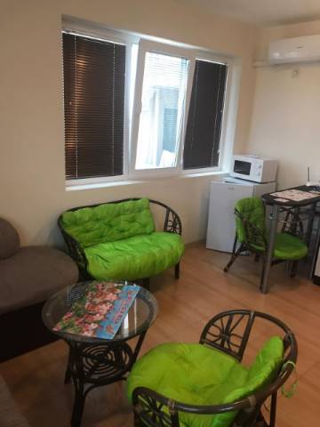 Finishing works: The building is with monolithic construction, made of natural materials, walls are made of bricks Wienerberger Porotherm brand, finished with plaster and multilayer thermal insulation and soundproofing. The apartment is fully finished, in excellent condition, hardly lived - terracotta tiled floor; latex painted walls and ceilings; placed metal entrance and MDF interior doors; placed PVC joinery; underfloor heating throughout the apartment, including the shower room with toilet; shower room with toilet - fully finished and equipped, terracotta tiled floor, faience on the walls, sanitary equipment, shower cabin, water heater; installed Air conditioning in the living room.