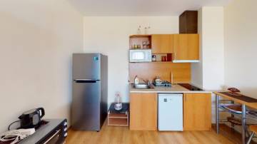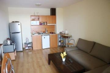 We offer for sale a fully furnished, one-bedroom apartment with a total built-up area of 64,74 sq.m, which is situated on the sixth residential floor. The exposure is southwestern. The apartment is suitable both for summer holiday or year-round use. A great advantage is the low maintenance fee. The complex has an Act of Permission to use granted (01.06.2008), individual accounts of electricity.