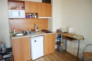 Finishing work: The apartment is fully finished - laminated and terracotta tiled floors; latex painted walls and ceilings; placed PVC joinery and doors; shower room with toilet - fully finished and equipped, terracotta tiled floor, faience on the walls, sanitary equipment, water heater; installed Air conditioning.