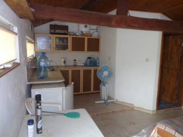 The guest house is converted to a studio with a bedroom, kitchenette and a bathroom and toilet.