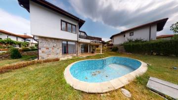 We offer for sale a luxury, fully finished, spacious, two-storey house / villa / townhouse in Bulgarian style with own swimming pool. The house has a total built-up area of 212 sq.m and a built-up area of 88 sq.m. The house features a functional distribution of the premises. The house has never been lived in since it was built. The house is suitable for year-round living as well as for renting.