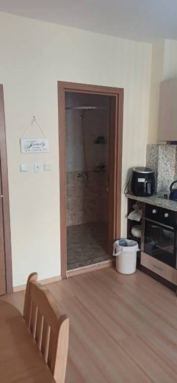 Finishing works: The studio is fully finished - laminated floors; latex painted walls and ceilings; placed PVC joinery; placed entrance and MDF interior doors; sanitary unit - fully finished and equipped, terracotta tiled floor, faience on the walls, sanitary ware, water heater; installed Air conditioning.