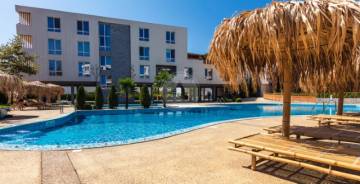 Description: Atlantis Las Brisas is a home of dreams is where coziness meets comfort to create the unique atmosphere of the Mediterranean. The complex consists of four buildings "A", "B", "C" and "D" and underground parking under all buildings. Each of them is on four floors. Closest to the sea are enclosures "C" and "D". The architectural solution of the Las Brisas complex is based on a completely new style, not used earlier in the construction of residential complexes on the southern Black Sea coast of Bulgaria. Professionals call it a model of modern Mediterranean style. The territory of the complex is always very quiet and peaceful, even in summer. There are two swimming pools: for adults and children's pool area, sunbeds with umbrellas, green gardens and outdoor areas, bicycle parking, video surveilance. Access to the territory is limited, all owners have a chip.