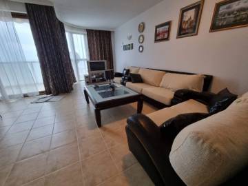 For sale a spacious, fully furnished, two-bedroom apartment with sea panorama in a building about 500 meters away from the beach in the town of Sveti Vlas, Nesebar municipality