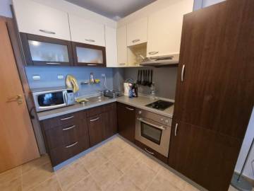 Finishing works: The apartment is fully finished - terracotta tiled floors; latex painted walls and ceilings; placed PVC joinery; placed entrance and MDF interior doors; sanitary units - fully finished and equipped, terracotta tiled floor, faience on the walls, sanitary ware, shower cabin, water heater; installed Air conditioning.