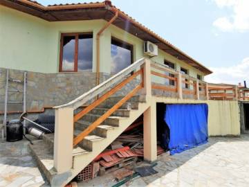 Finishing works: The house is fully finished - laminated, terracotta tiled and carpeted floors; walls - panels, latex painted; ceilings - stretch ceilings, latex painted, wooden paneling; placed PVC joinery; placed armored entrance and MDF interior doors; bathrooms with toilets - fully finished and equipped - terracotta tiled floor, faience on the walls, sanitary ware, bathtub - Jacuzzi and shower cabin in the main bathroom, installed water heaters; the heating is solved by means of central heating with boiler and radiators in the rooms, as well as with air conditioners and convectors.